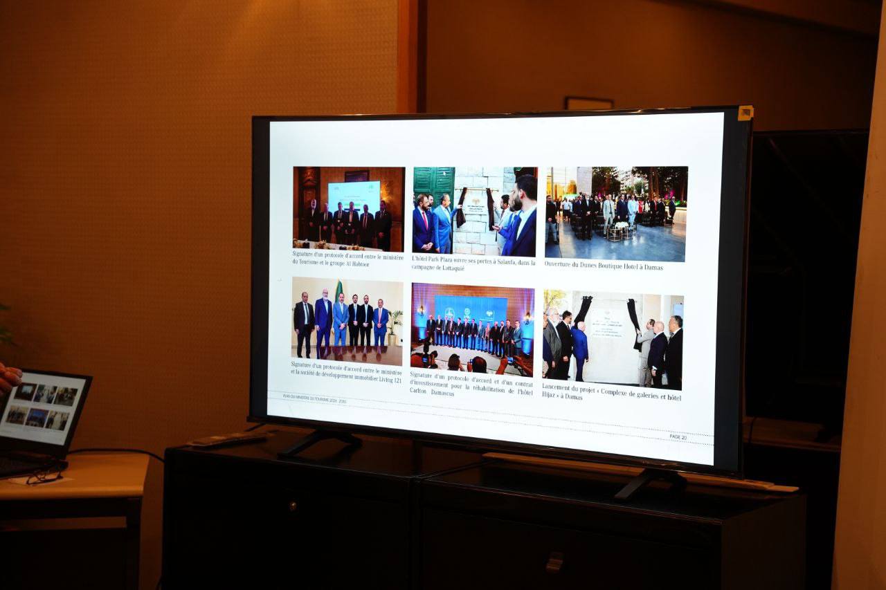 وتناولت جلسات الحوار آليات التنسيق المشترك لتعزيز التنمية وتطوير آفاق التعاون مع الشركات الفرنسية في قطاع السياحة ومناقشة أولويات العمل للنهوض به وأهمية الترويج لمقومات سوريا الطبيعية والأثرية وإيصال الصورة الحقيقية والحضارية التي تعكس الواقع بالتعاون مع الشركات الإعلامية المختصة.