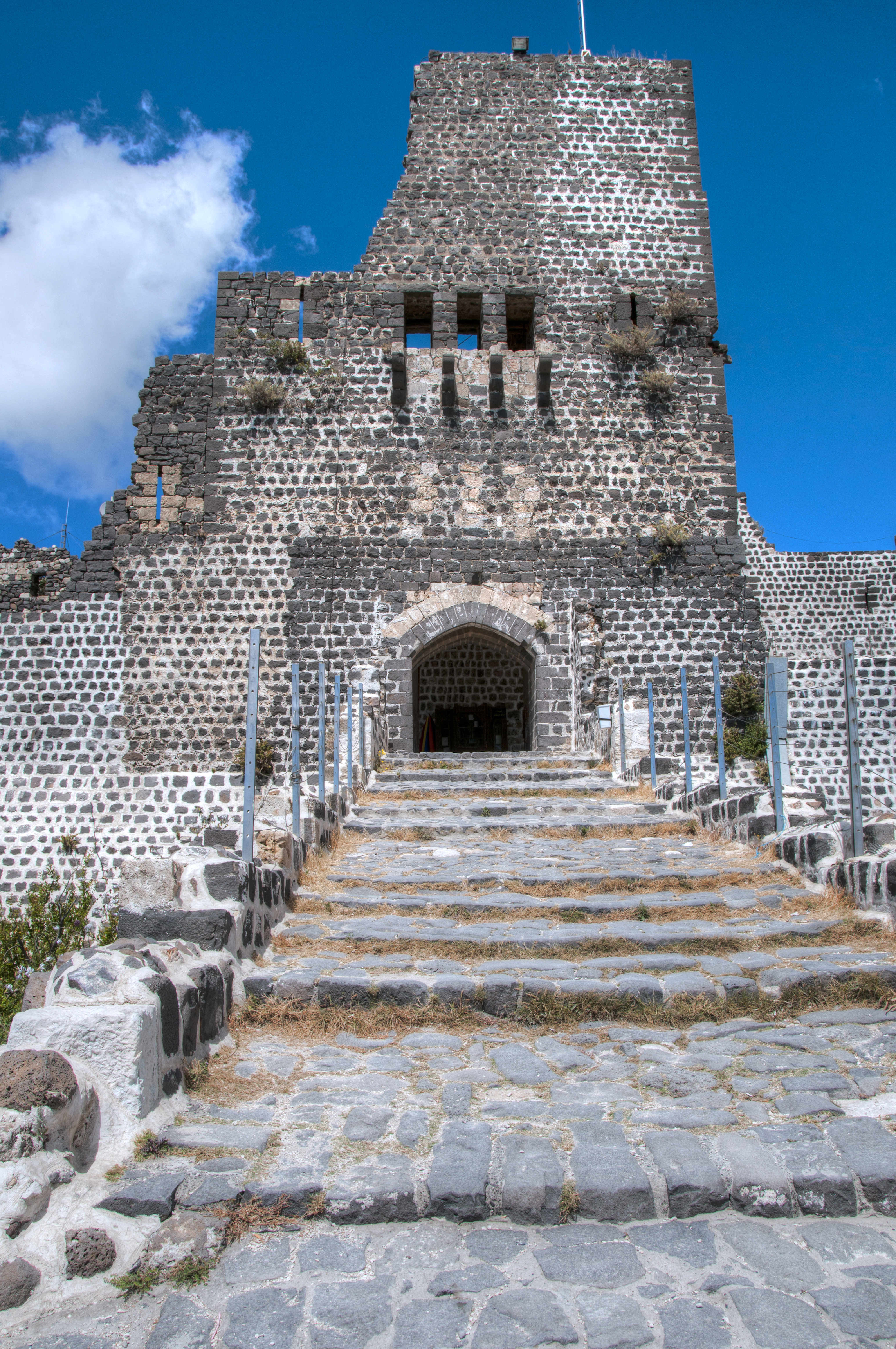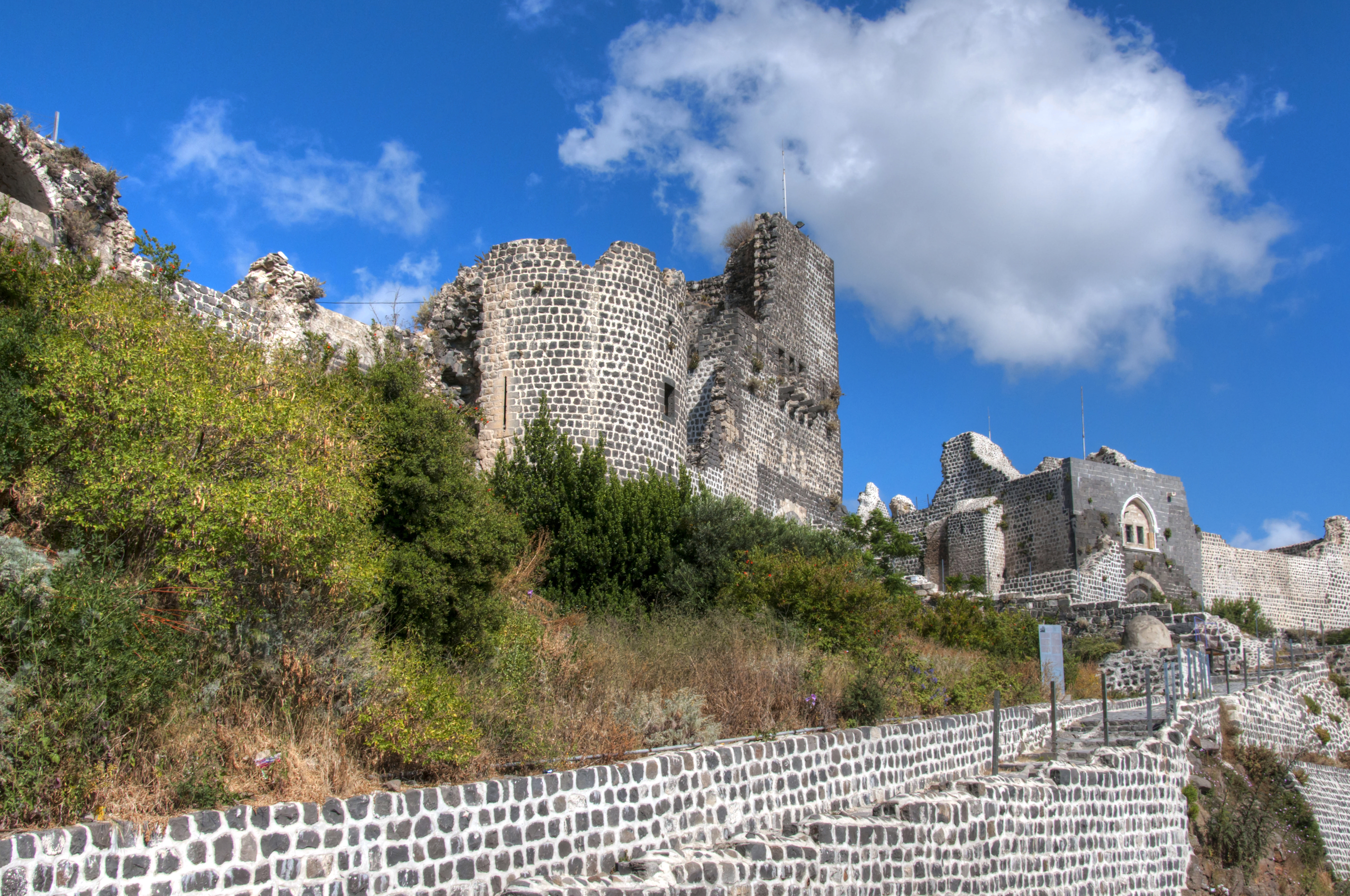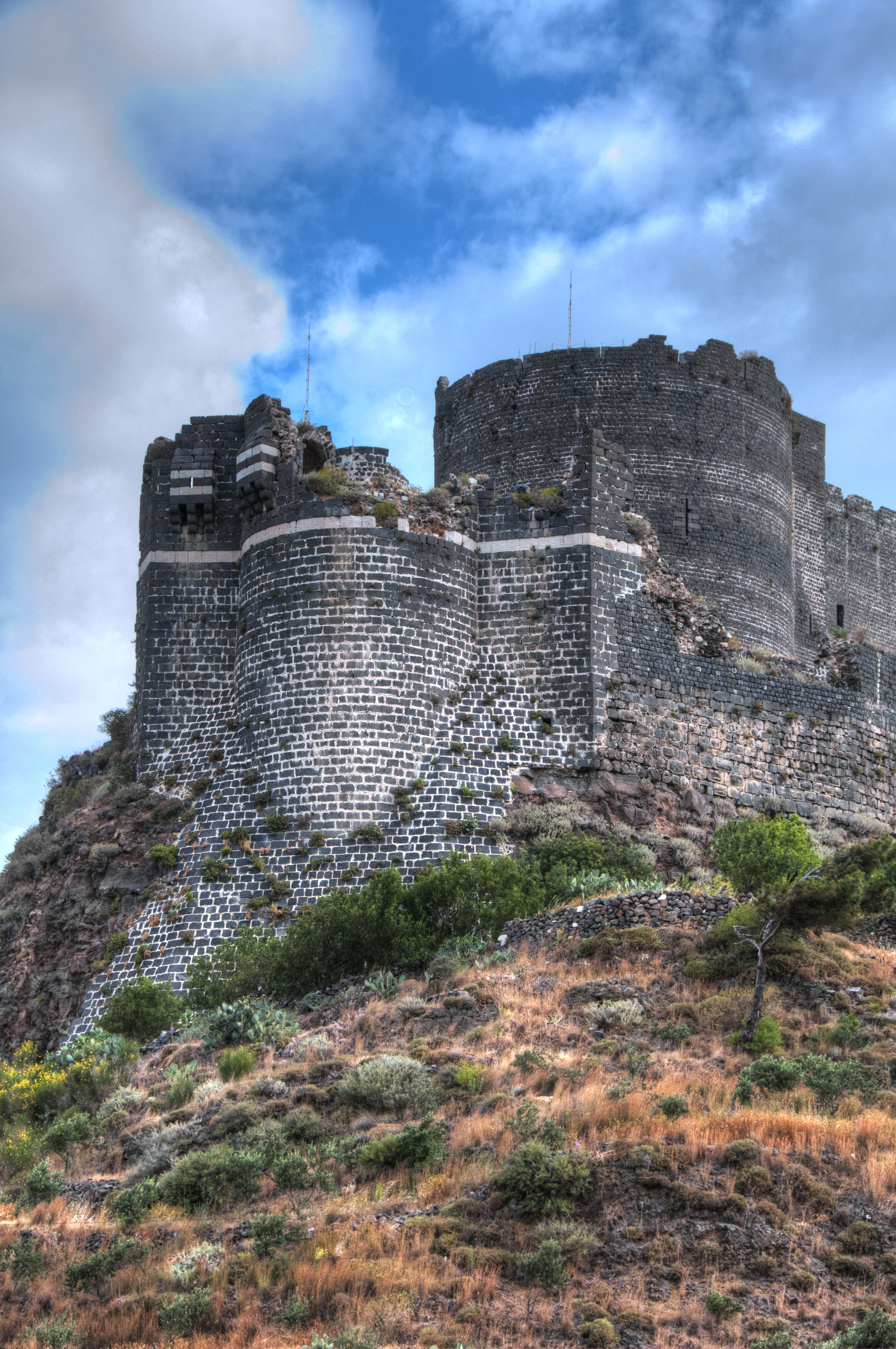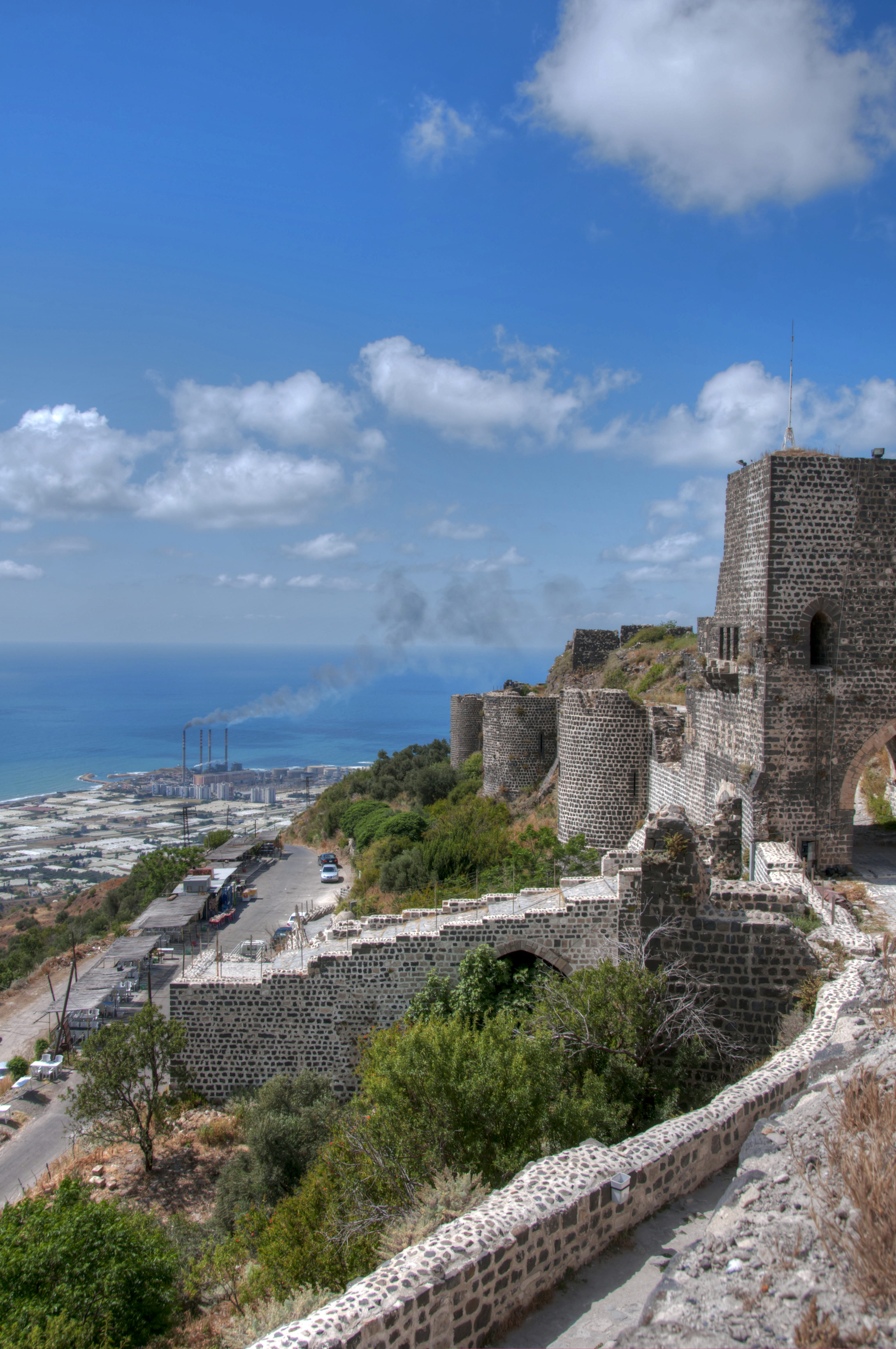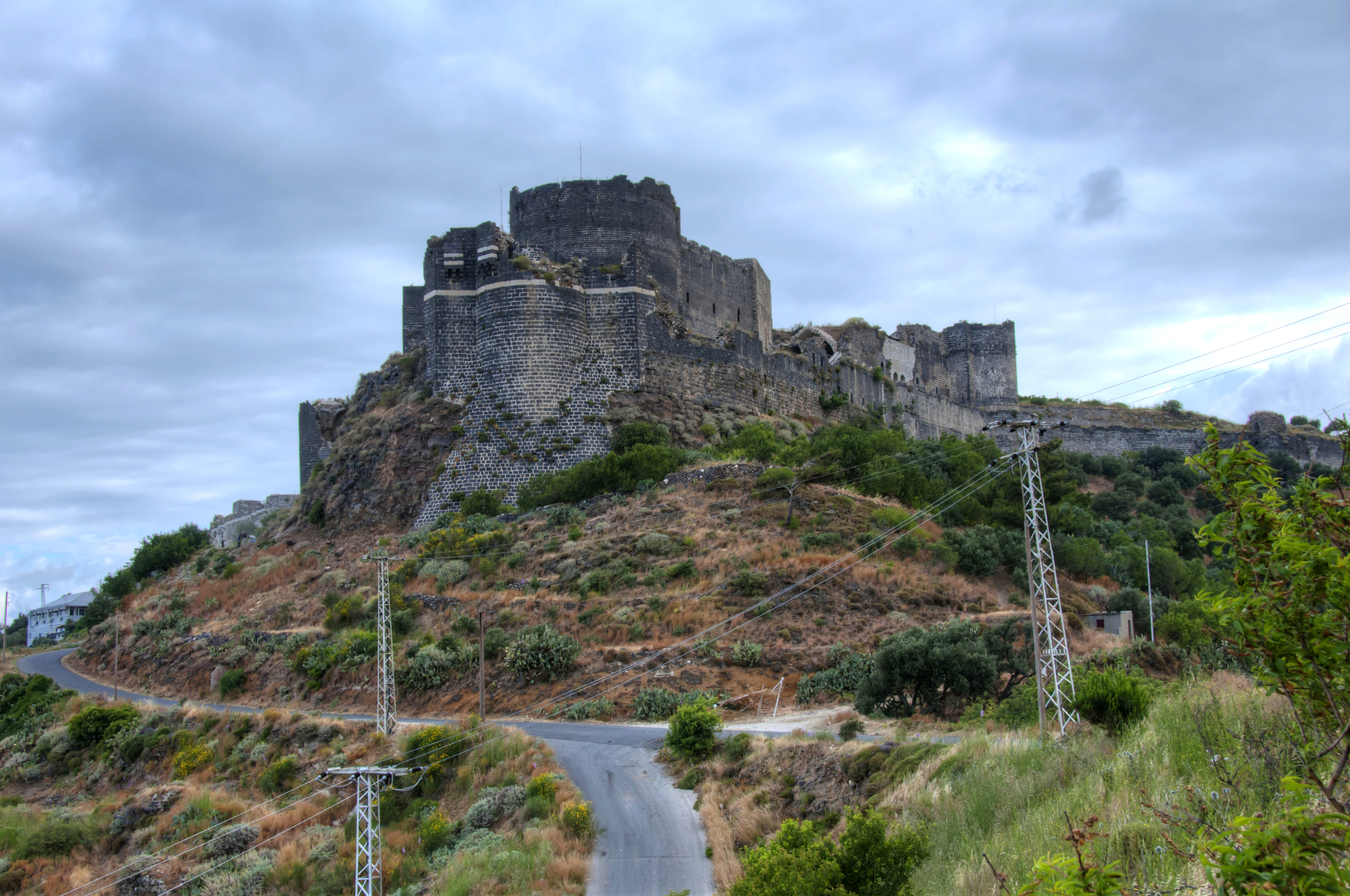 تتوضع القلعة على هضبة صخرية بركانية ترتفع 360م عن سطح البحر مطلة على البحر الأبيض المتوسط، يحدها من الشرق سلسلة من الجبال الداخلية والوديان العميقة أما في الجهة الجنوبية الغربية فتتوالى المرتفعات والمنخفضات إلى أن تزول تماماً قرب سطح البحر.